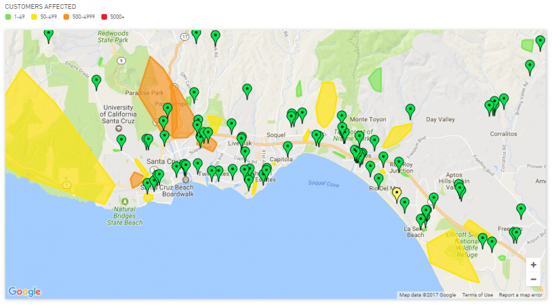 There have been significant reports of outages and wires down through the county. Follow them here https://m.pge.com/#outages.